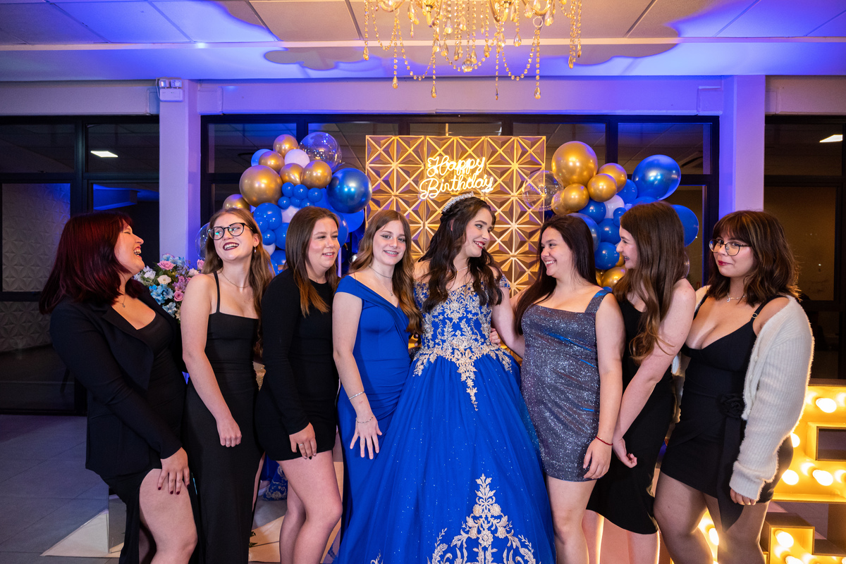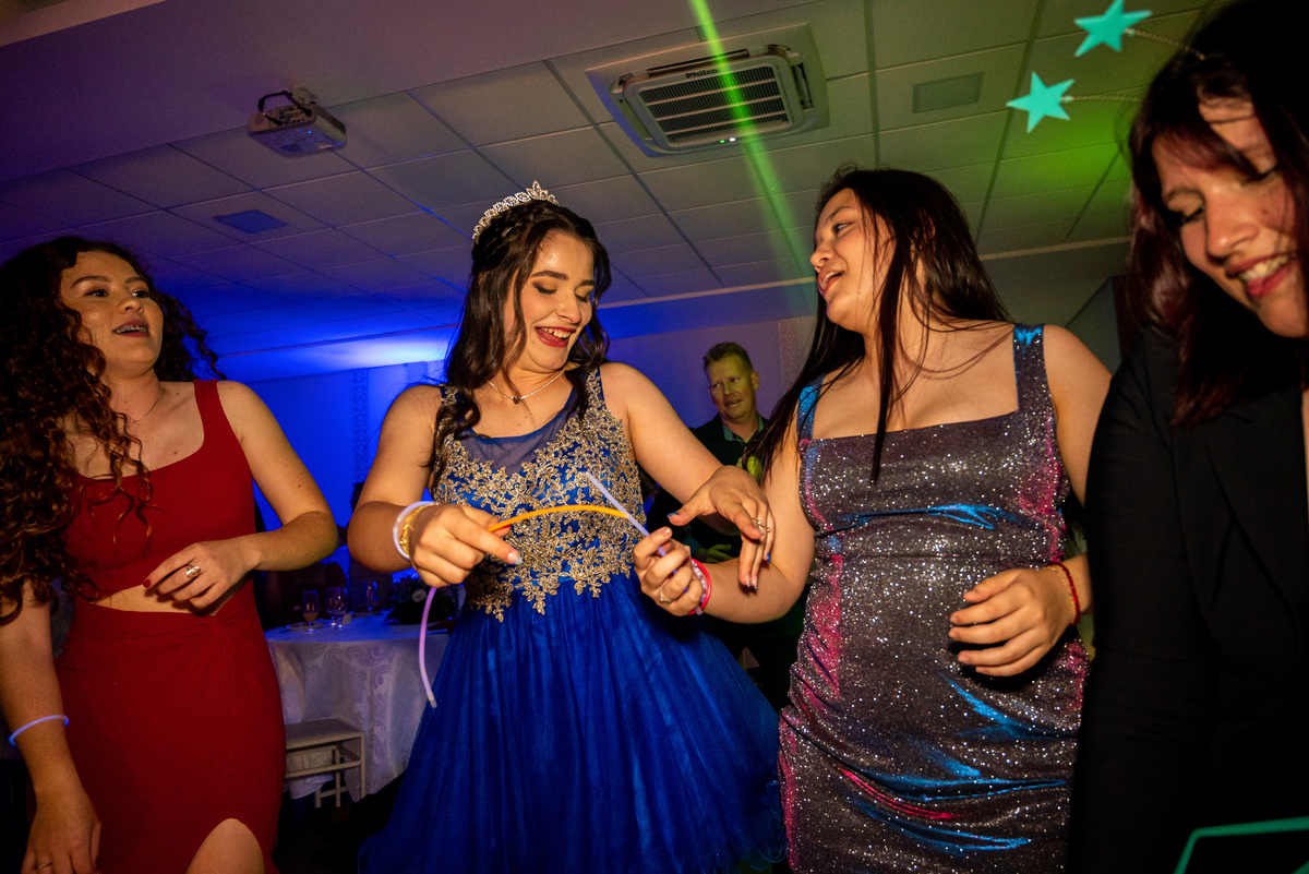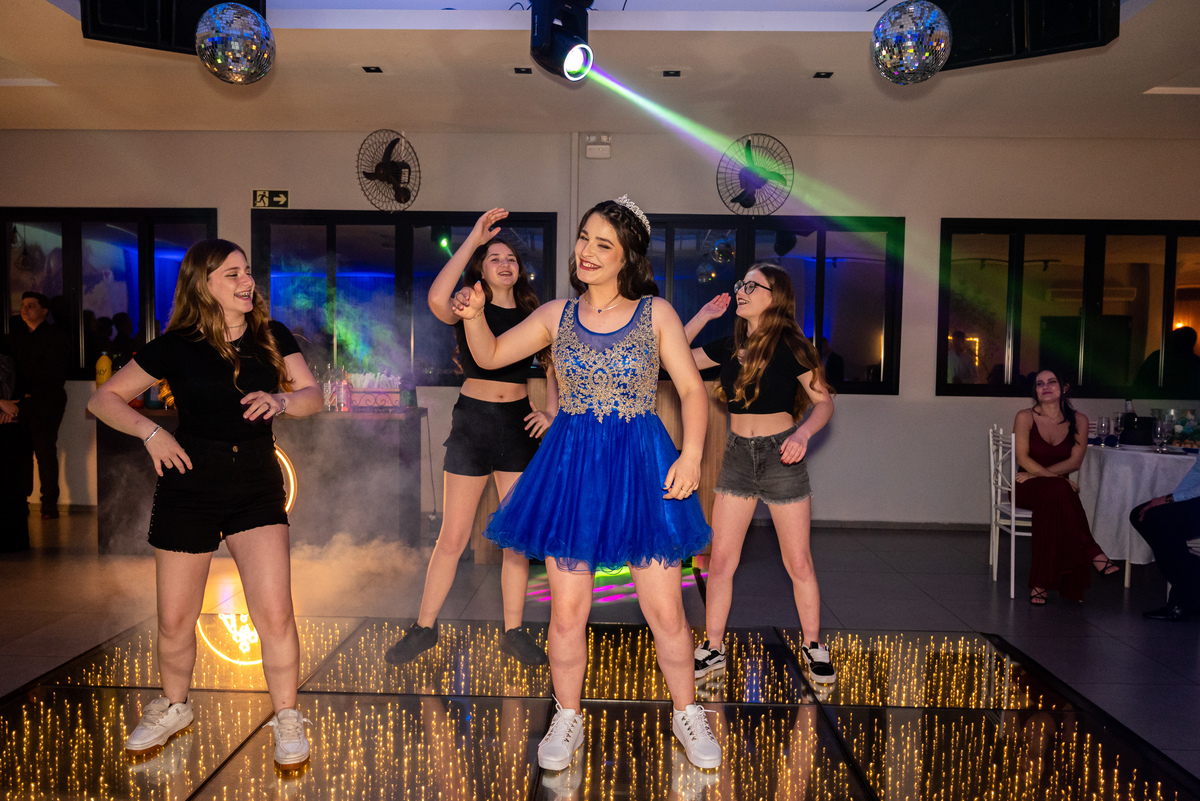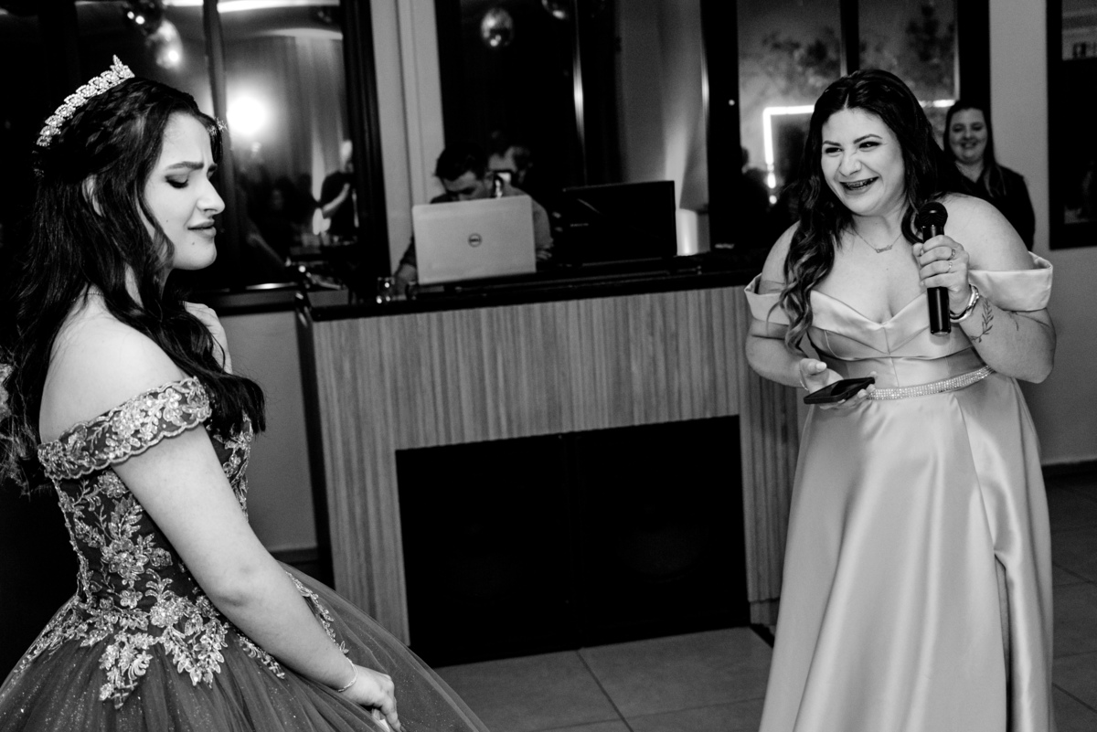 Tem algo muito especial em chegar antes, ter o salão só pra gente e fotografar a debutante ali, inteira e suuuper animada.