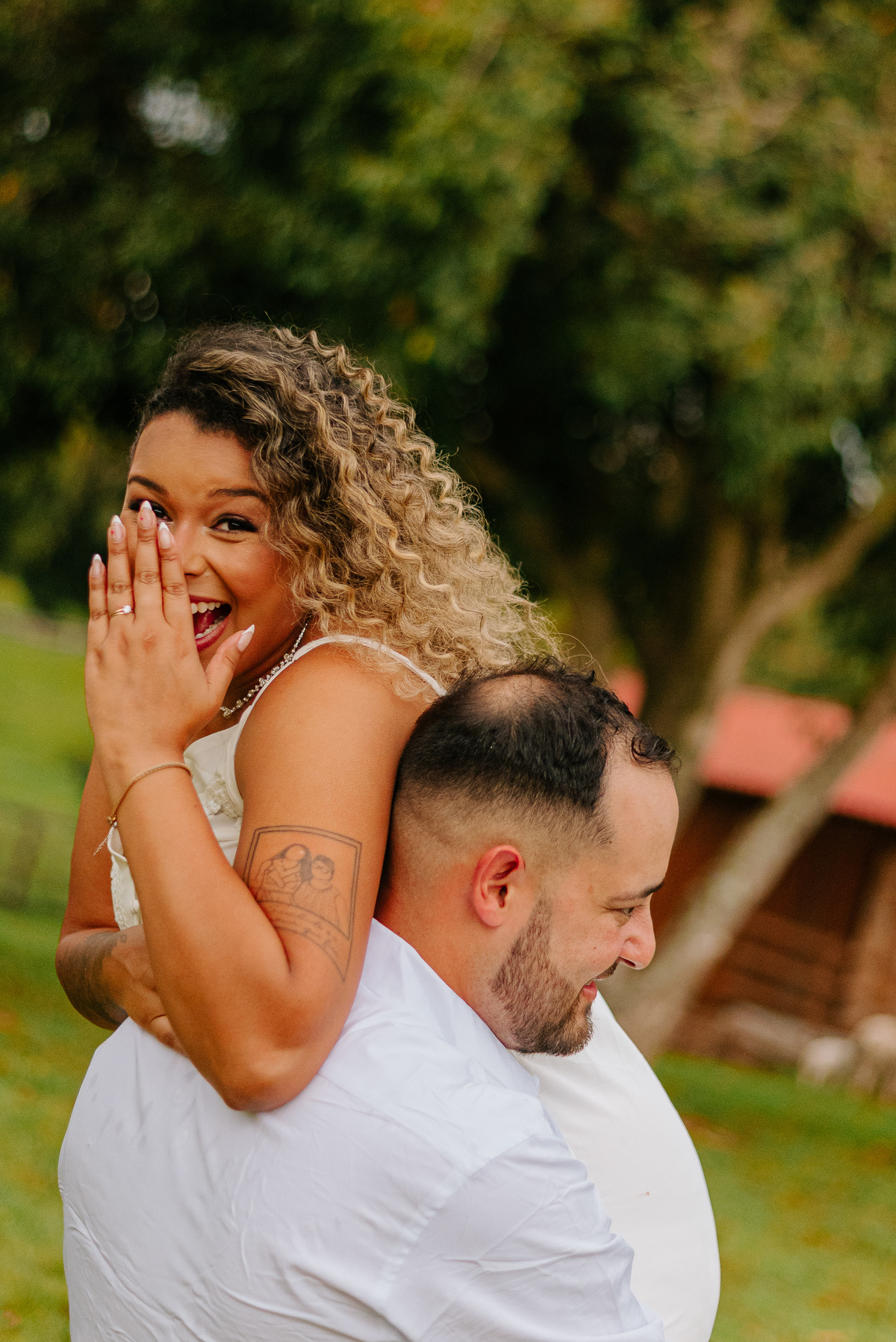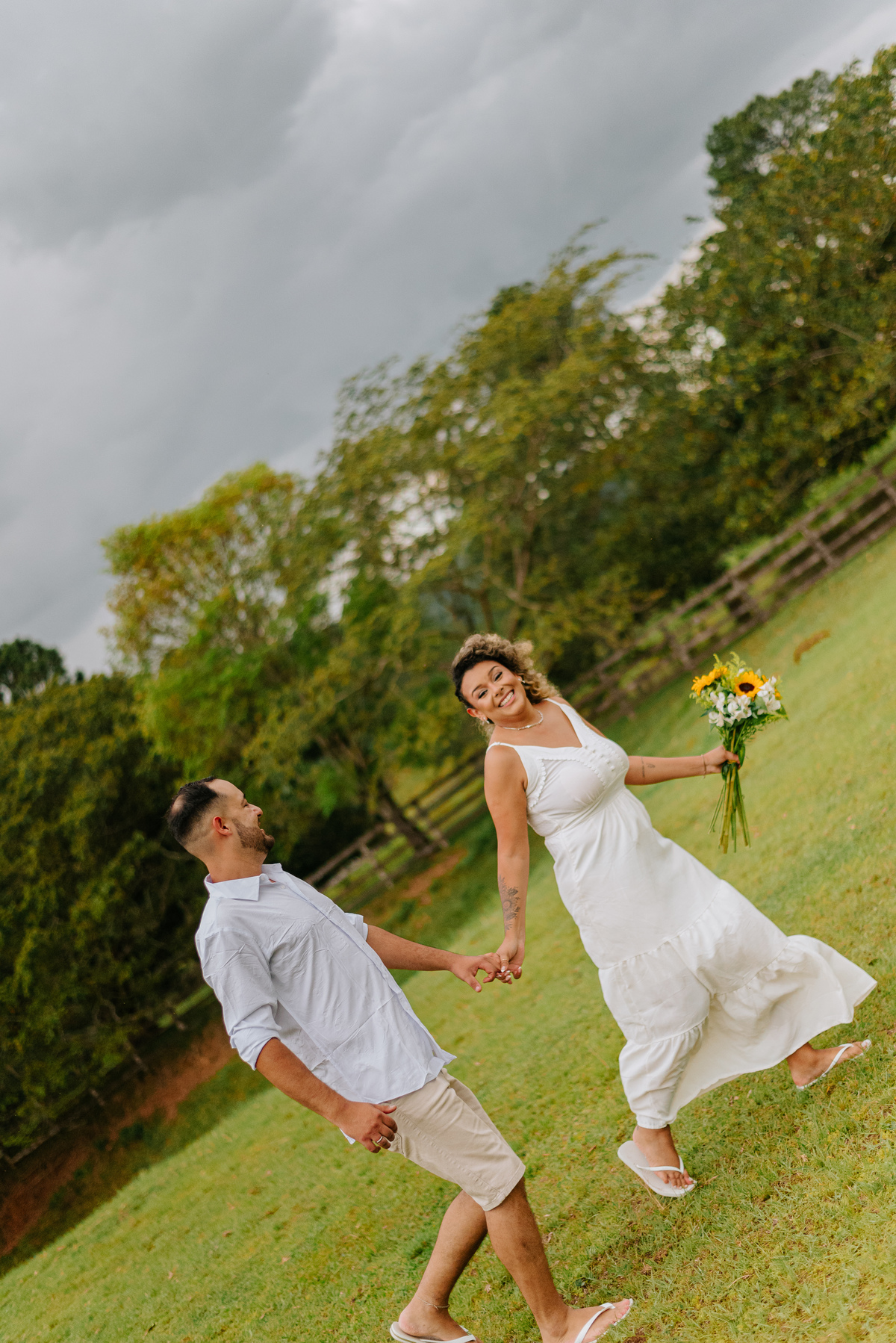 Escolhemos um cantinho especial em Lomba Grande, um lugar que faz parte da história deles. O céu tava nublado, a gente se preparando pra fotografar na chuva e tudo kkkk, mas o universo conspirou a favor e o fim de tarde nos presenteou com uma luz linda