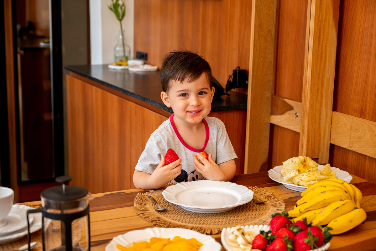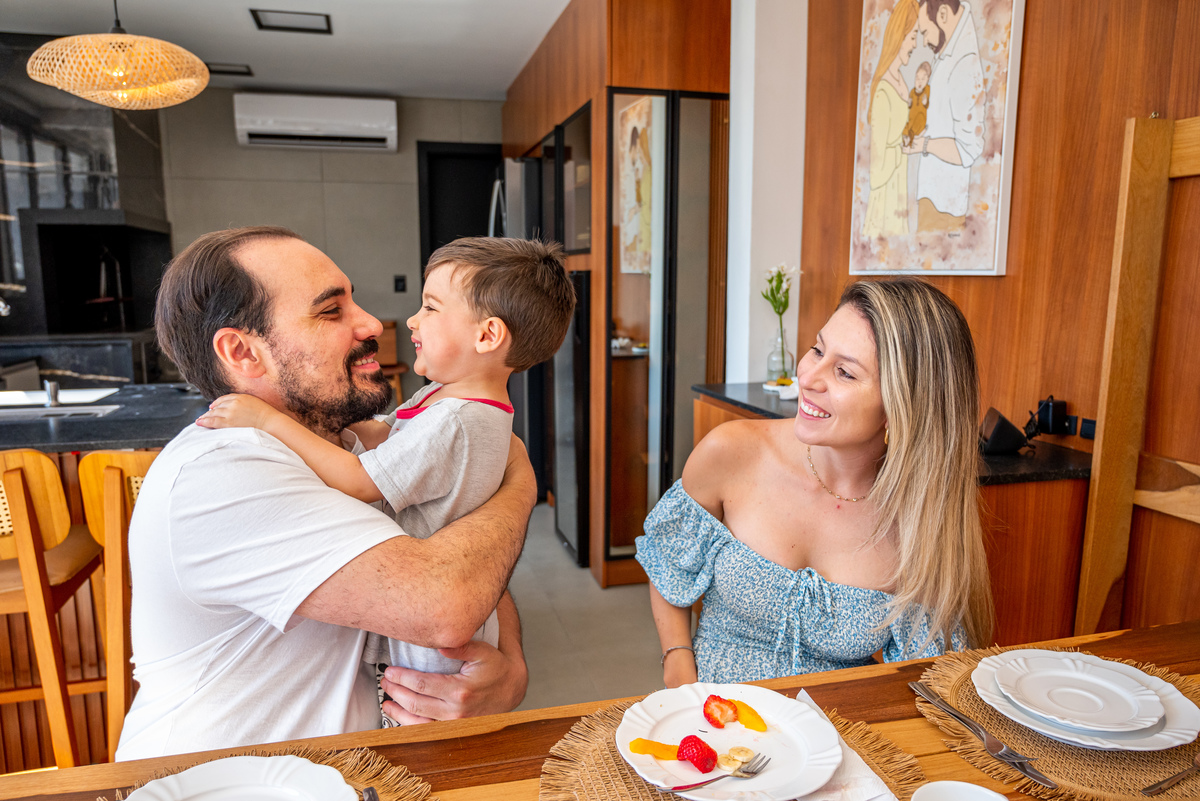Café da manhã sem pressa, livrinho lido com colo, risada no meio da sala e a rotina acontecendo do jeito mais real possível.